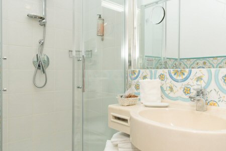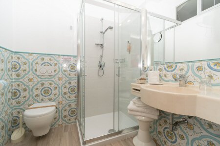 Tutte le camere sono fornite di servizi privati con box doccia e phon, telefono, frigorifero, TV digitale, Internet wi-fi, aria condizionata, cassaforte e ampio balcone vista mare con sedie, tavolino e comodo stendino.
